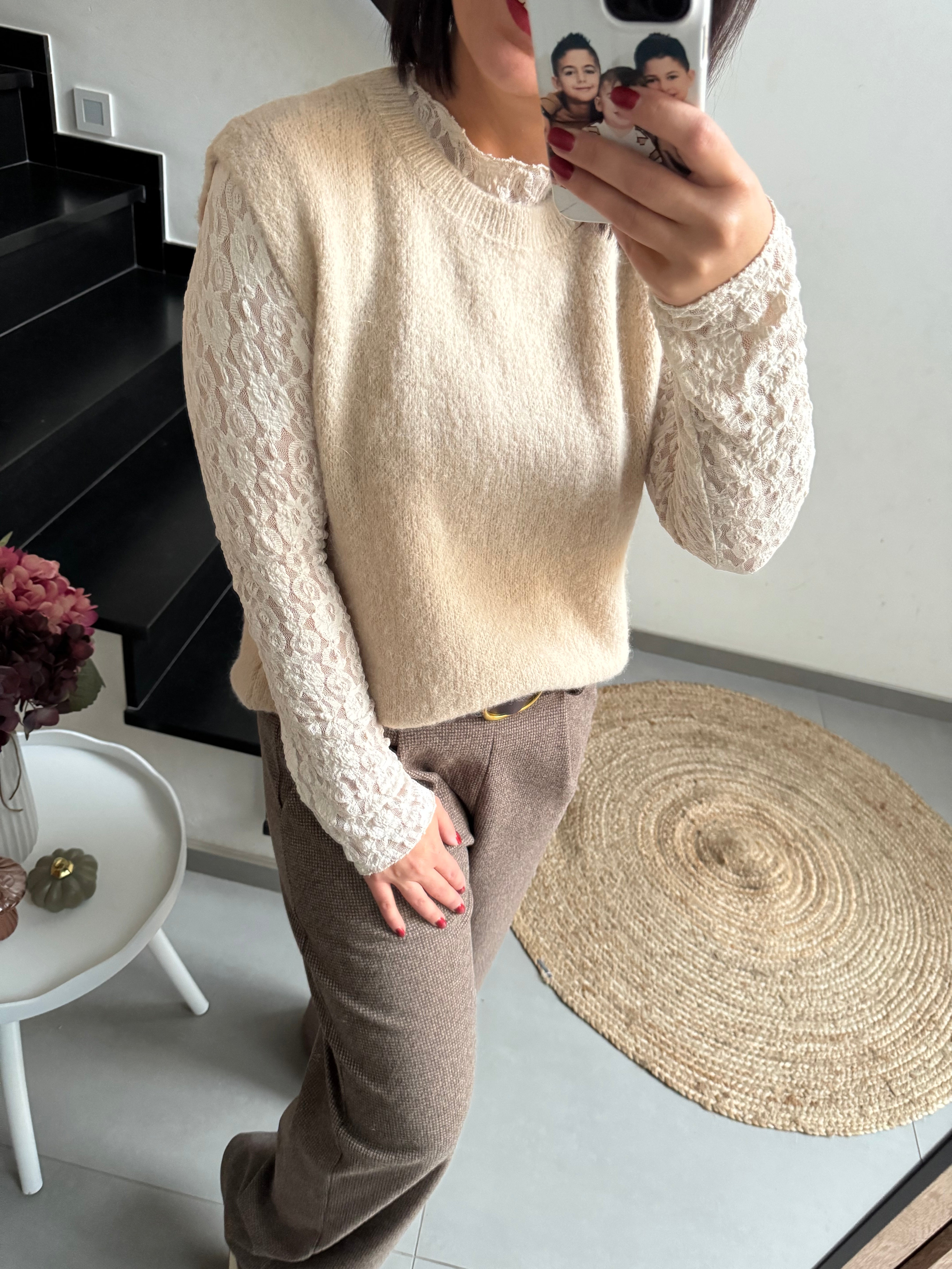 Blouse dentelle beige